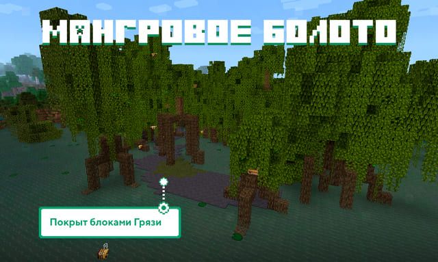 - мангровое болото представляет собой модифицированную версию классического варианта болотной локации со своими особенностями, вся поверхность состоит из грязевого покрытия, на котором растут Мангровые деревья.